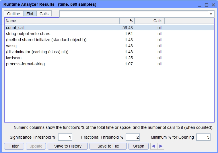 Like Run | Run Project, with additional behavior to perform a runtime analysis of the run. This command wraps a call to with-profiling around the running of the project, and will analyze only the process of the running project. When the project run exits (typically by closing the project's main window), it will also automatically display the new analysis in the Runtime Analyzer Results dialog. The Runtime Analyzer is described in runtime-analyzer.html.
