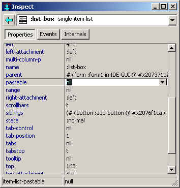 Note that list-box was found using the function find-sibling and the name, :list-box.