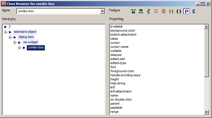 The dropping outline to the right under the title bar displays the history of entered Lisp expressions, with the most recent visible. (History can be cleared with the blue arrow icon just to the left of the History dropping outline.) Both expressions which were evaluated and those which were entered and not evaluated (because, e.g., the New Prompt button was clicked before evaluation) appear in the list. Clicking on an item in this drop-down list will paste the expression at the listener's prompt, ready to be evaluated again (after optionally editing it). Clicking the blue arrow at the left of an expression will show the values that were returned, each in a separate line (expressions not evaluated have a gray dot rather than a blue arrow); clicking one of these values will return the value, leaving the variable * bound to the value for further use. Expressions in the history drop-down list may also be manipulated more quickly with the keyboard shortcuts for some of the buttons to the left of the drop-down list; see below for details.