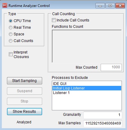 Run Menu: Runtime Analyzer Control Dialog