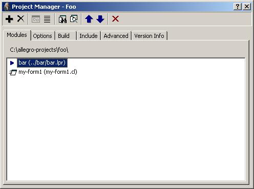 2. Press the Add File button on the left end of the Project Manager's toolbar (its icon is a plus sign) to add a new module to project foo.